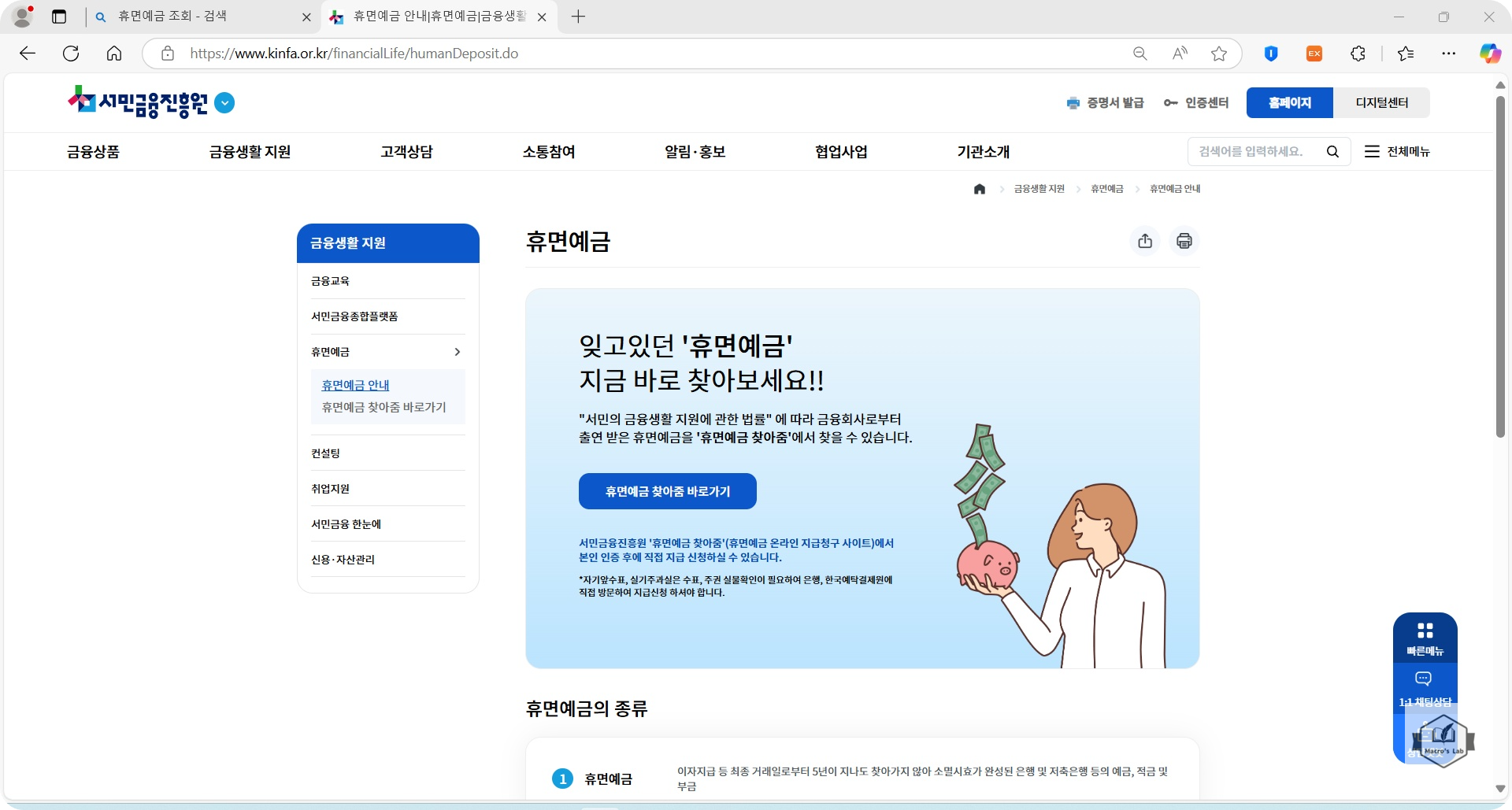 - 서민금융진흥원의 '휴면예금 조회'