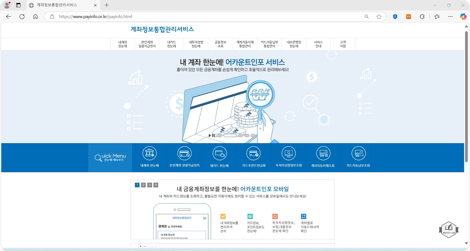 - 금융결제원의 '계좌정보통합관리'